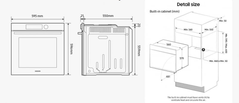 Размеры для встраивания (ВхШхГ): 579x560x550 мм