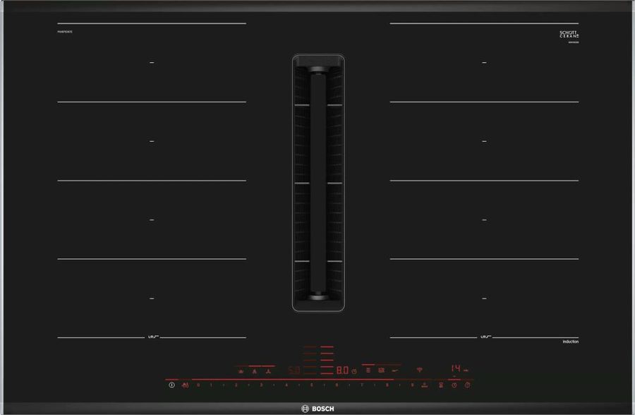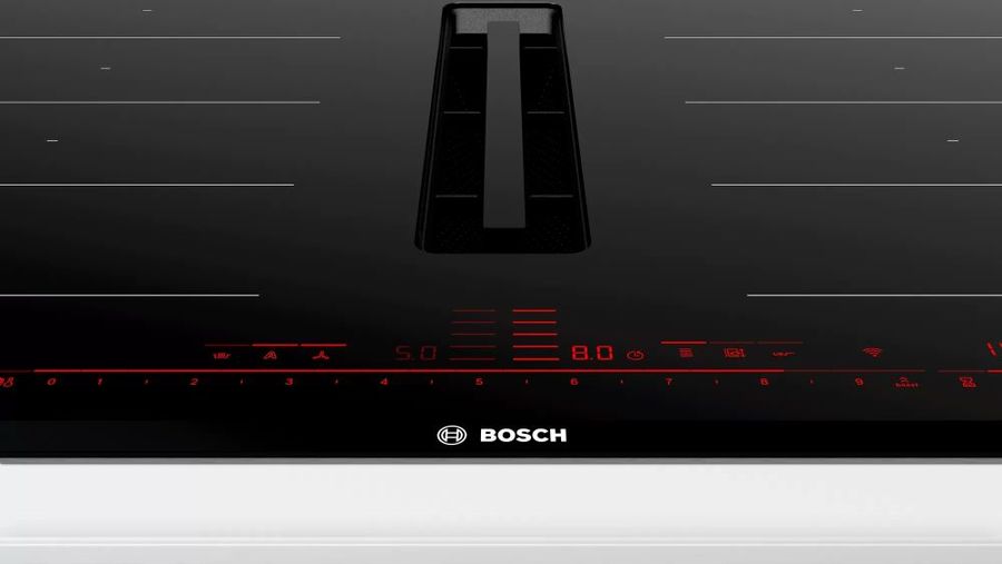 Индукционная варочная панель Bosch PXX875D67E — выбор для тех, кто ценит чистый минималистичный дизайн и продуманные технологии. Черная стеклокерамическая поверхность со скошенным краем и металлическим профилем по бокам гармонично впишется в современную кухню.