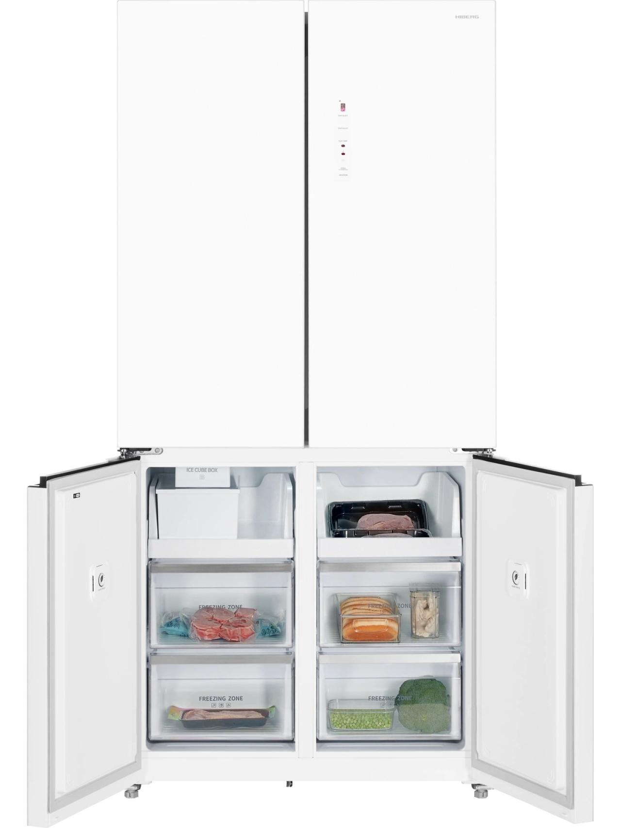 Отдельного внимания заслуживает автоматический ледогенератор без подключения к водопроводу: достаточно заполнить встроенный резервуар, и у вас всегда будет запас льда к ужину или для освежающих напитков. В итоге HIBERG i-RFQ 705G W предлагает редкое сочетание вместимости, эргономики и эстетики — без компромиссов.