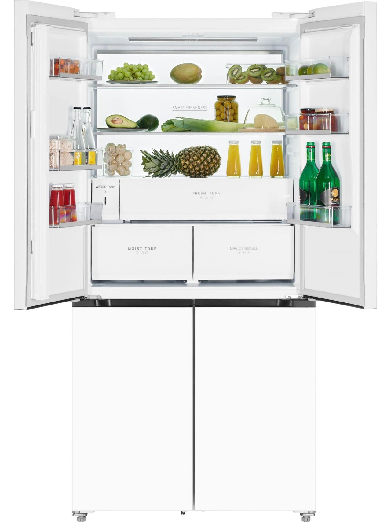 HIBERG i-RFQ 705G W — это четырехдверный холодильник для тех, кто хочет совместить премиальный дизайн с реальной практичностью. Элегантный фасад из белого стекла и глубина всего 60 см позволяют интегрировать его в кухонный гарнитур без зазоров, сохраняя чистые линии интерьера. При этом внушительный общий объем 600 л дает свободу хранения для большой семьи или любителей готовить с запасом.