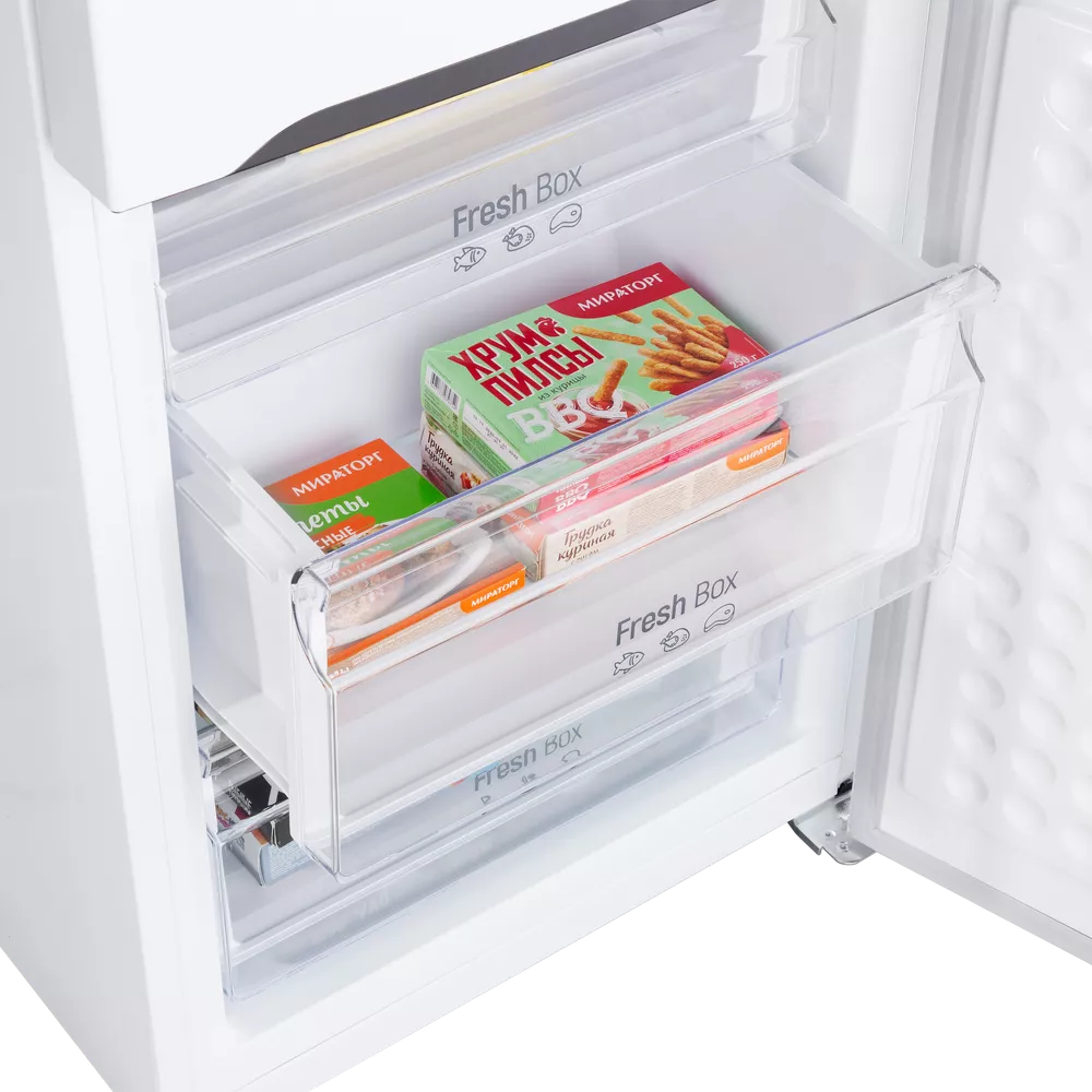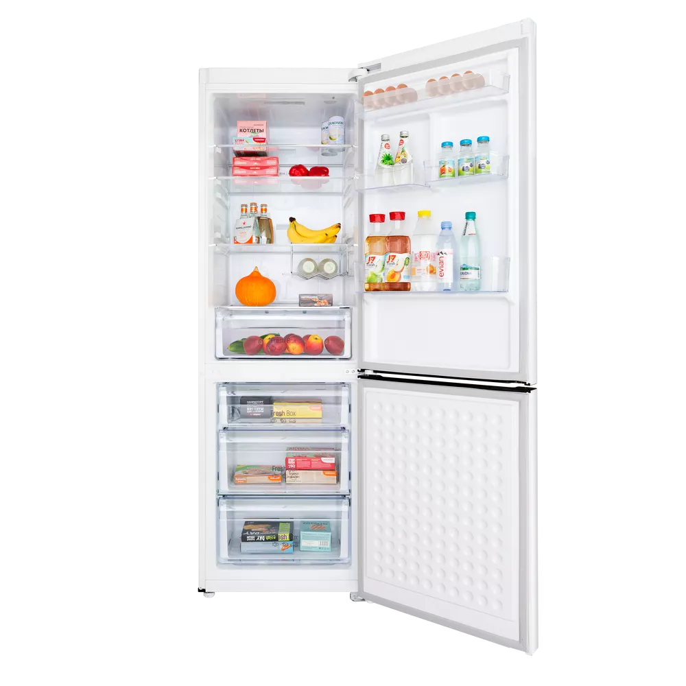 Ежедневную эксплуатацию делает комфортной низкий уровень шума 37 дБ и понятное сенсорное управление. Полезный объём разделён на удобные зоны хранения с продуманными полками и ящиками, чтобы каждому продукту нашлось своё место.
