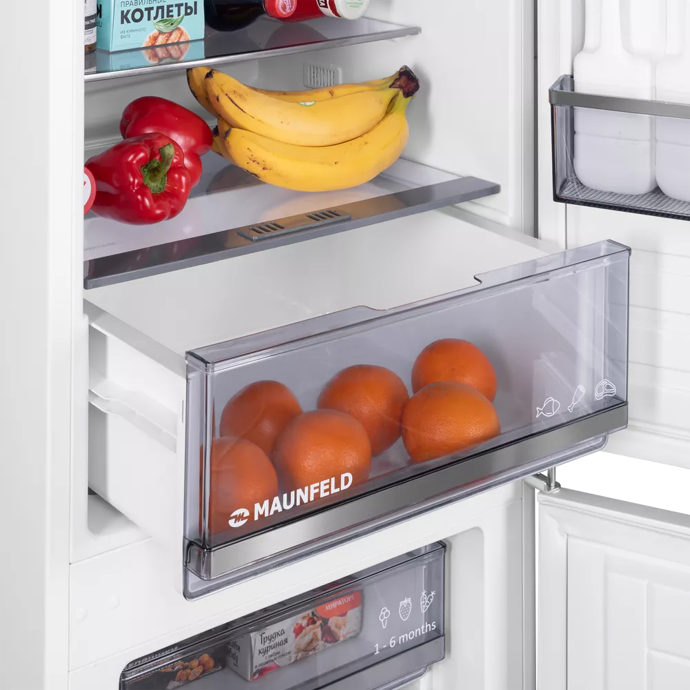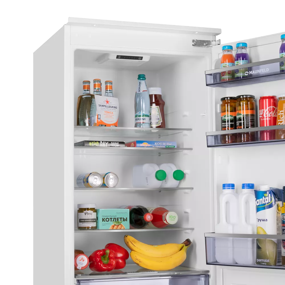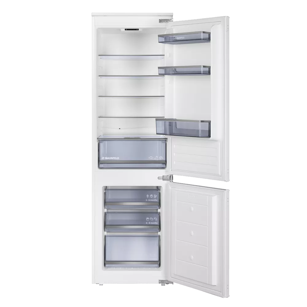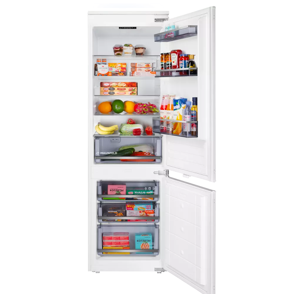 Встраиваемый холодильник с инвертором MAUNFELD MBF177SWGR Inverter — практичное решение для аккуратной интеграции техники в кухонный гарнитур и комфортного повседневного использования. Модель легко вписывается в высокий шкаф и помогает поддерживать порядок внутри камер.