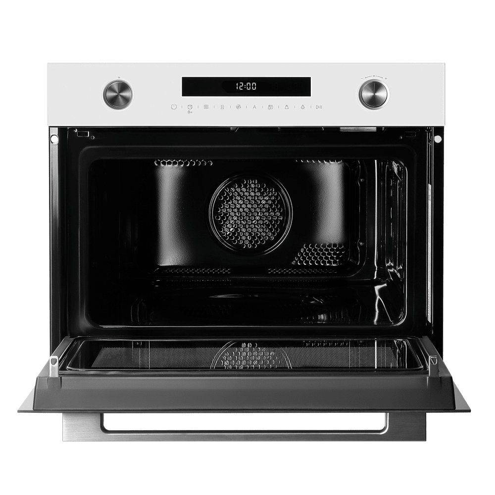 Компактный духовой шкаф с функцией СВЧ MAUNFELD MCMO5015MFW объединяет гибкость микроволн и возможностей духовки в одном корпусе. Несмотря на размеры, полезный объем 50 л позволяет готовить большие порции и несколько блюд подряд — удобно для семейных обедов и ужинов.