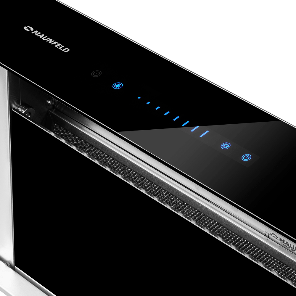 Кухонная вытяжка встраиваемая в столешницу MAUNFELD Prestige 60 чёрный — это эффектное решение для современных кухонь, где ценят чистые линии и порядок. При работе она элегантно поднимается над поверхностью, а по завершении снова скрывается в столешнице, освобождая полезное пространство и сохраняя общий минималистичный вид.