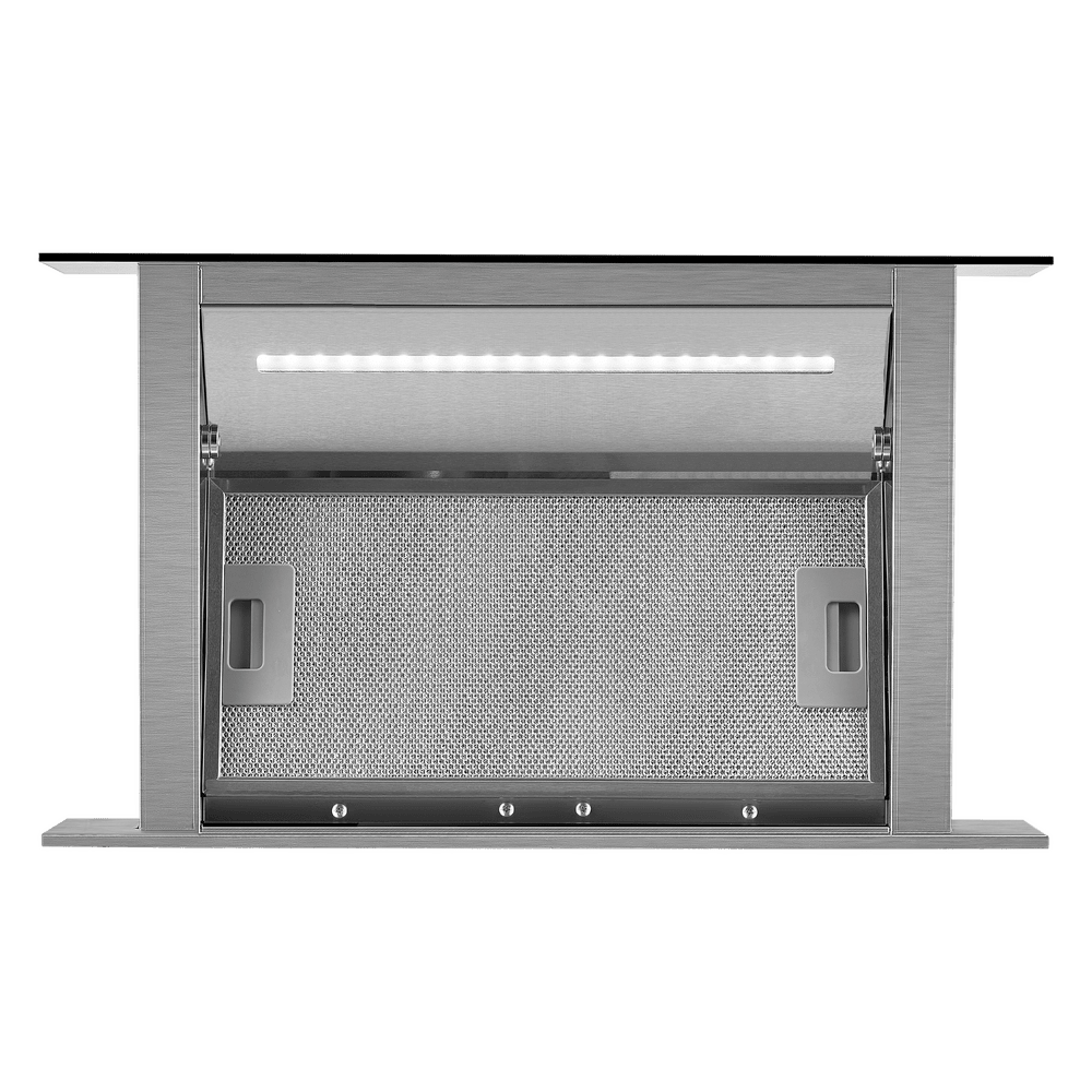 Кухонная вытяжка встраиваемая в столешницу MAUNFELD Prestige 90 чёрный — это эффектное решение для современной кухни, где важны чистый воздух и свободная рабочая поверхность. При включении устройство аккуратно поднимается над столешницей, а после работы исчезает в нише, поддерживая порядок и визуальную лёгкость пространства.