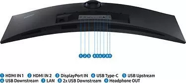 Разъемы: DisplayPort (v1.4), 2 x HDMI (v2.0), разъем для наушников, USB-концентратор (3 выхода USB 3.0), USB Type-C (мощность зарядки 90 Вт) LAN / Ethernet