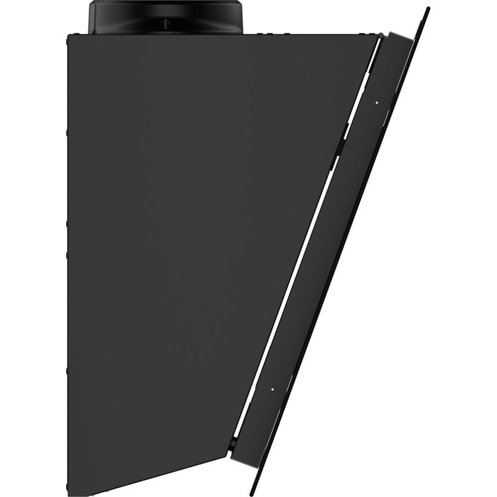 Наклонная конструкция дополняется LED-лентой с регулировкой яркости и теплоты света, чтобы равномерно подсветить варочную поверхность. В комплекте уже предусмотрены угольный фильтр и увеличенный жироулавливающий фильтр, а минимальная высота монтажа 45 см упрощает интеграцию в кухонный проект.