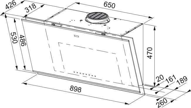 LED-лента с регулировкой интенсивности и теплоты света (1×4 Вт) равномерно подсвечивает варочную панель, создавая комфорт для глаз и подчёркивая эстетику рабочего пространства. В комплект входят угольный фильтр и увеличенный жироулавливающий фильтр, адаптированный к форме корпуса — это упрощает обслуживание и поддерживает стабильную эффективность.