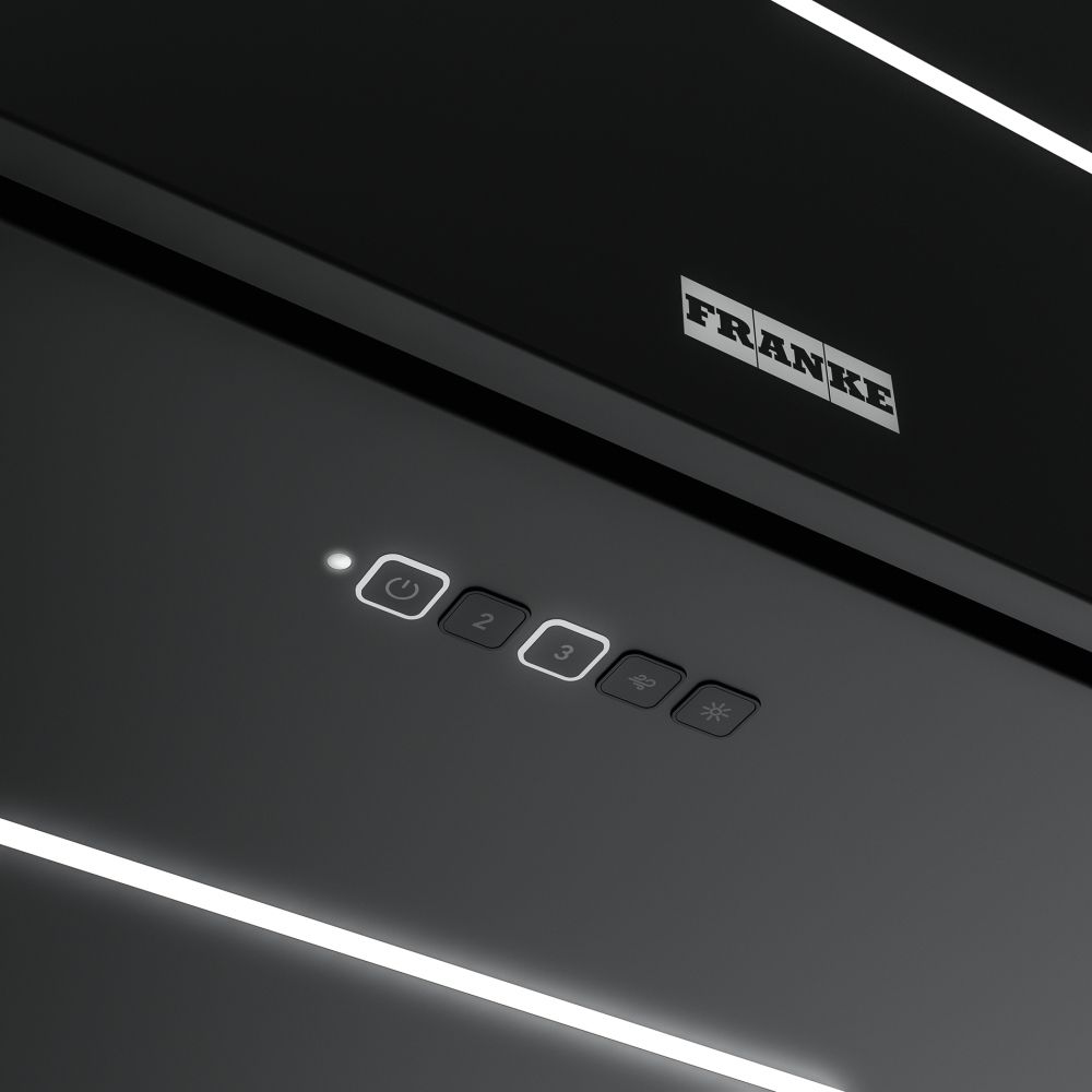 Островная кухонная вытяжка Franke FMAS BK EXTRA MATT F80 KL — выбор для тех, кто ценит чистый воздух и аккуратный дизайн. Черный матовый корпус органично вписывается в современные кухни и не отвлекает от общего интерьера, а фоновая подсветка из LED-лент по бокам создает уютную атмосферу и подчеркивает зону готовки.