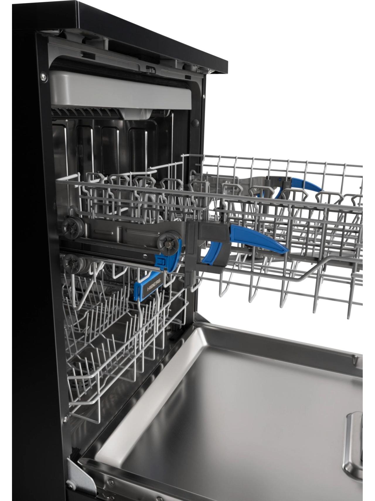 Восемь программ — от «Замачивания 45°C» до «Интенсивной 65°C» и «Ухода за машиной» — дают нужный результат в любой ситуации. Турбосушка горячим воздухом обеспечивает сухую и чистую посуду без разводов, а функция автоматическое открывание двери уменьшает конденсат и ускоряет естественную сушку.