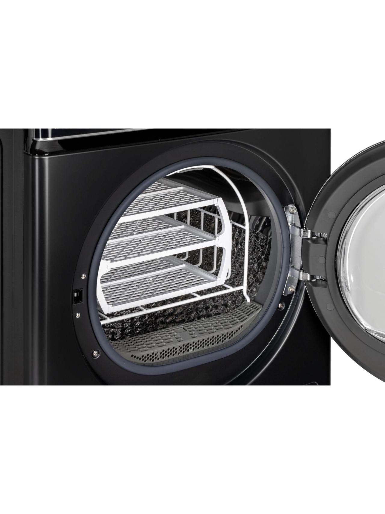 Стильная черная панель управления и лаконичный дизайн органично смотрятся в современной ванной или прачечной. При необходимости технику можно установить в колонну со стиральной машиной, сохранив пространство без компромиссов по удобству.