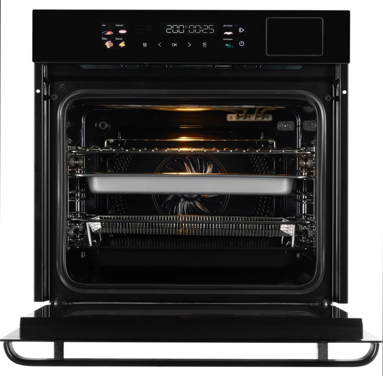 Встраиваемый духовой шкаф HIBERG S-VMF 6515 B SMART — выбор для тех, кто хочет ресторанный результат дома без сложностей. Интеллектуальный парогенератор бережно работает с продуктами, помогая сохранить соки и текстуру. Приготовление на пару уровня пароконвектомата делает рыбу, овощи и диетические блюда мягкими и сочными — без пересушивания и компромиссов по вкусу.