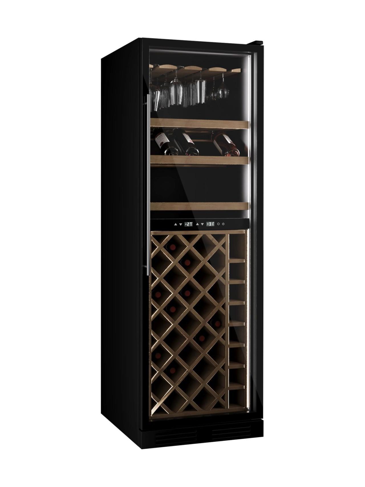 Эргономика продумана для крупной подборки из 90 бутылок: есть демонстрационные решения для красивой выкладки, телескопическая буковая полка для удобного доступа, отдельная полка для бокалов и секционный стеллаж. В повседневной эксплуатации приятно ощущается фирменный комфорт — Push to Open обеспечивает лёгкое и бесшумное открывание одним касанием, а замок с ключом помогает контролировать доступ в коммерческих пространствах.