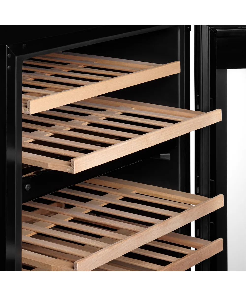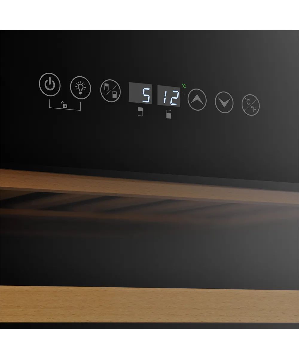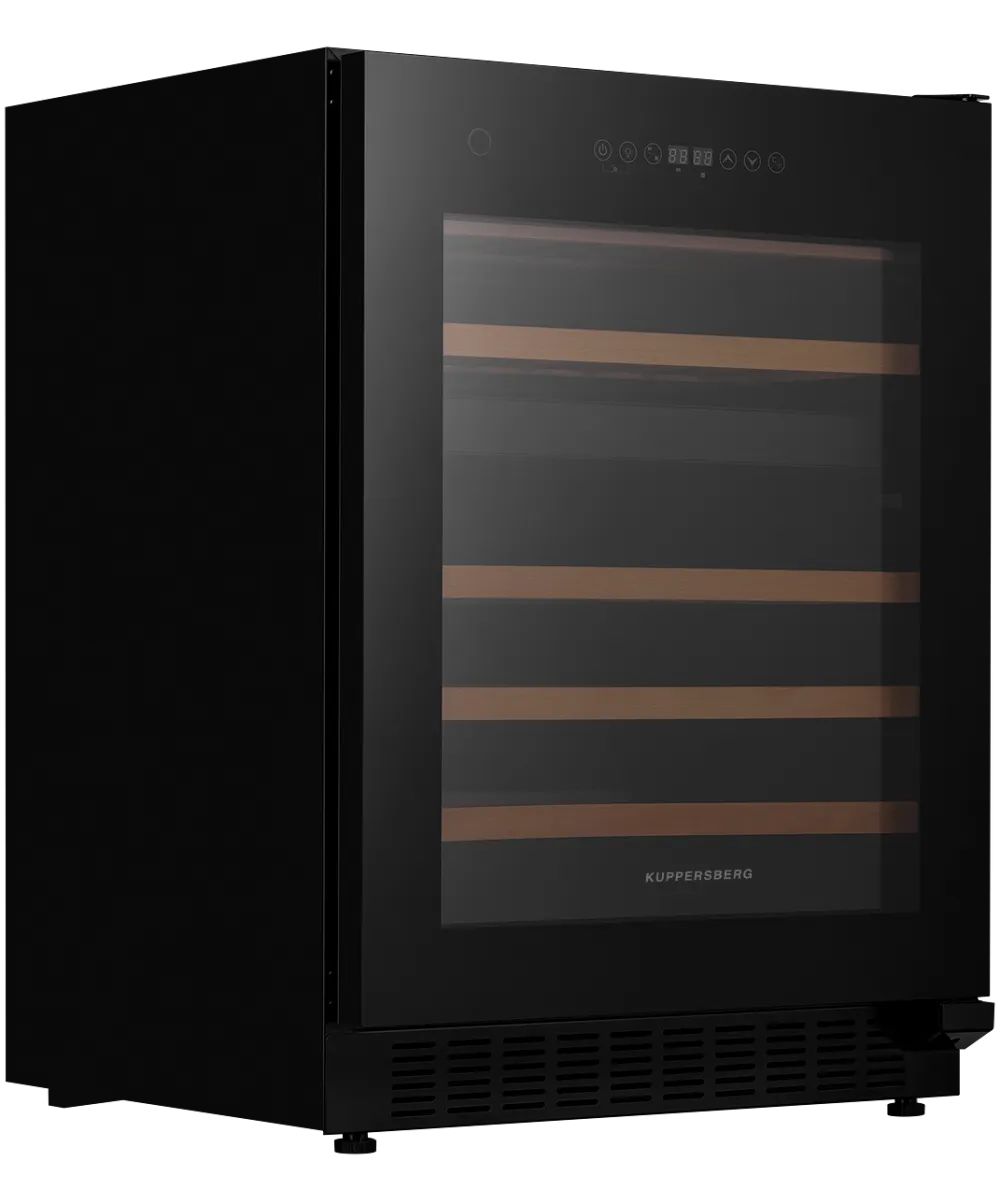 Модель рассчитана на вместимость 46 бутылок, что удобно для домашних коллекций и небольших дегустационных зон. Пять деревянных полок обеспечивают аккуратную укладку и быстрый доступ к бутылкам. Электронное управление и дисплей делают настройку параметров простой и наглядной.