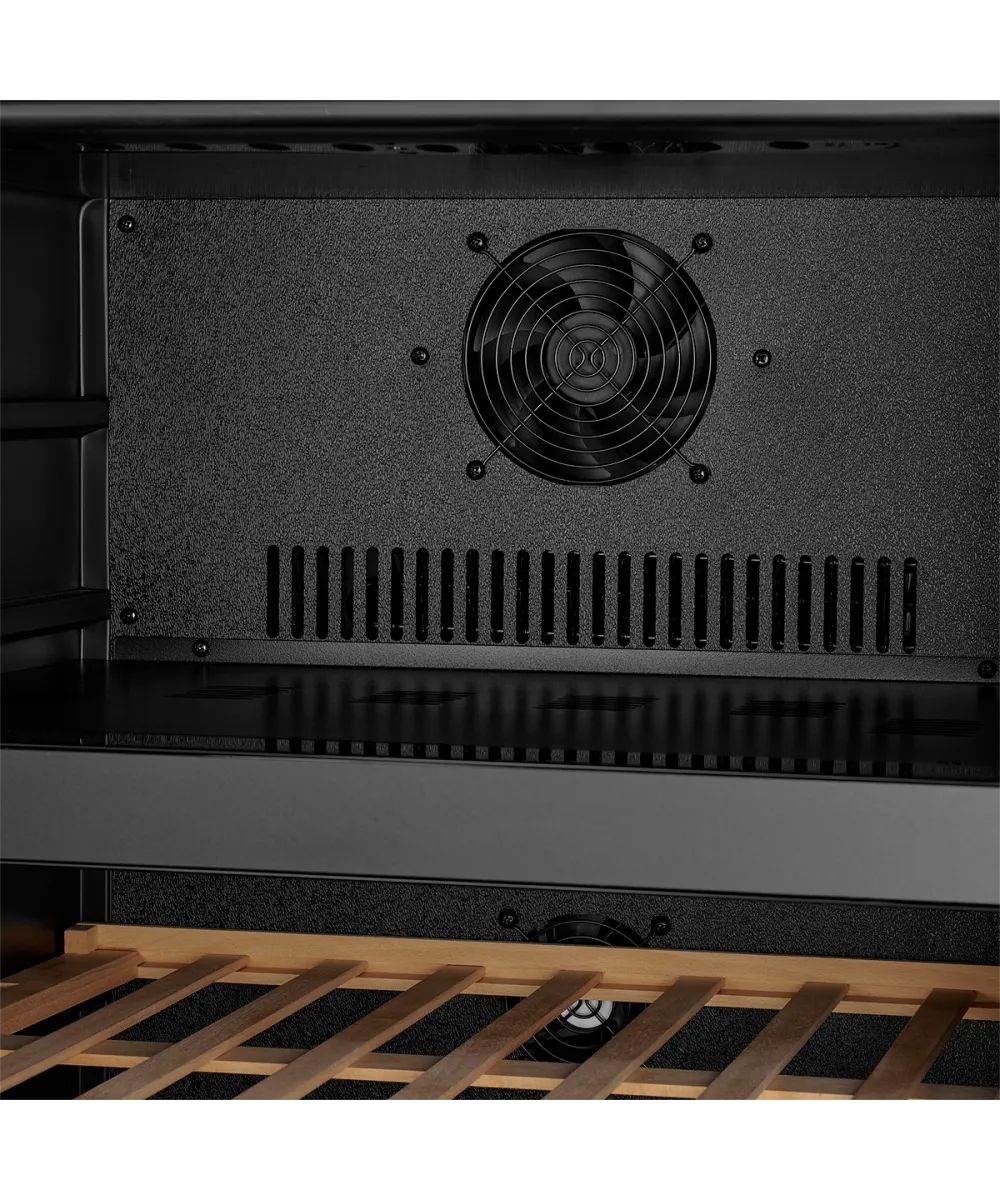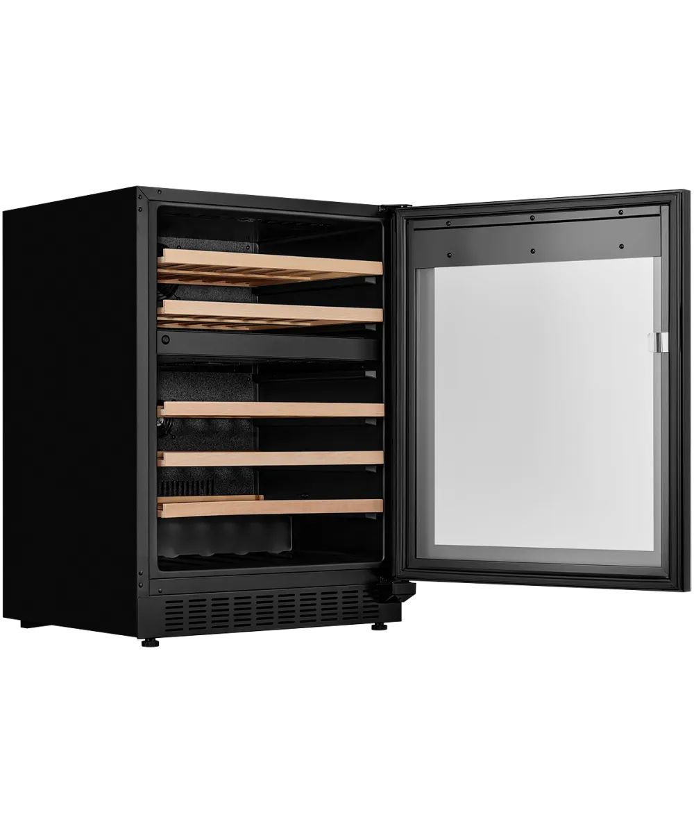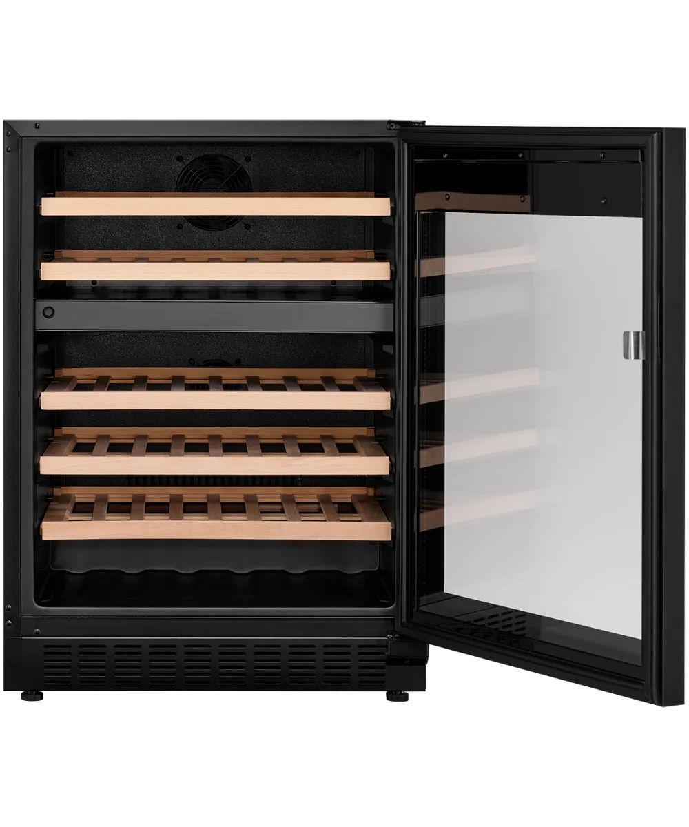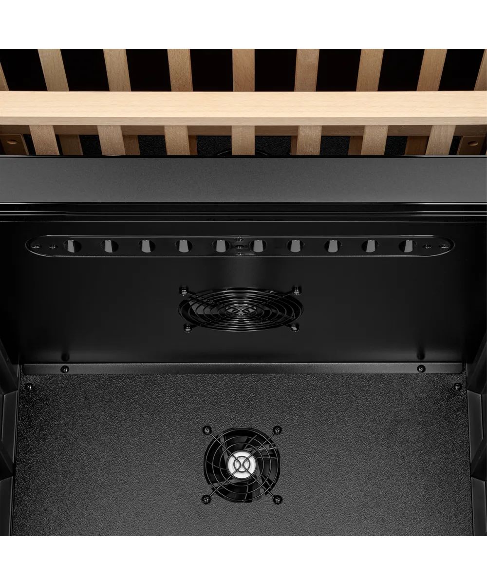 Модель рассчитана на вместимость 46 бутылок, что удобно для домашних коллекций и небольших дегустационных зон. Пять деревянных полок обеспечивают аккуратную укладку и быстрый доступ к бутылкам. Электронное управление и дисплей делают настройку параметров простой и наглядной.